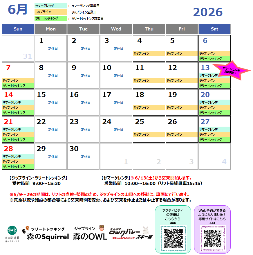 【5月・6月の営業スケジュール】