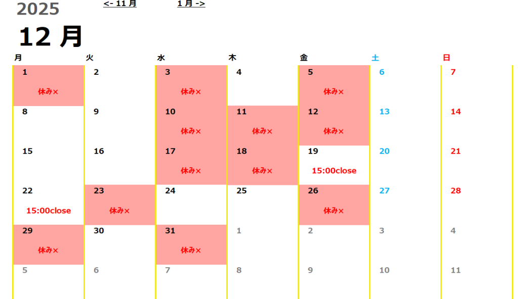 体験営業日は、下記カレンダーをご確認ください。