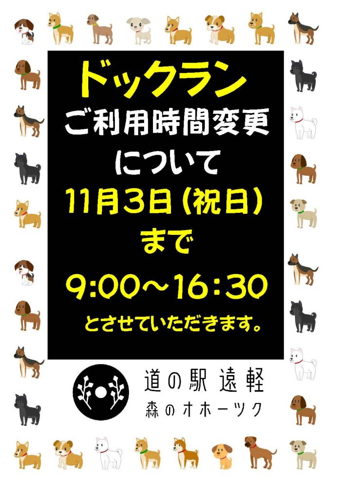 ※ドッグラン内における事故、盗難、紛失、ケガなどのトラブルについて、当道の駅は一切の責任を負いかねます。