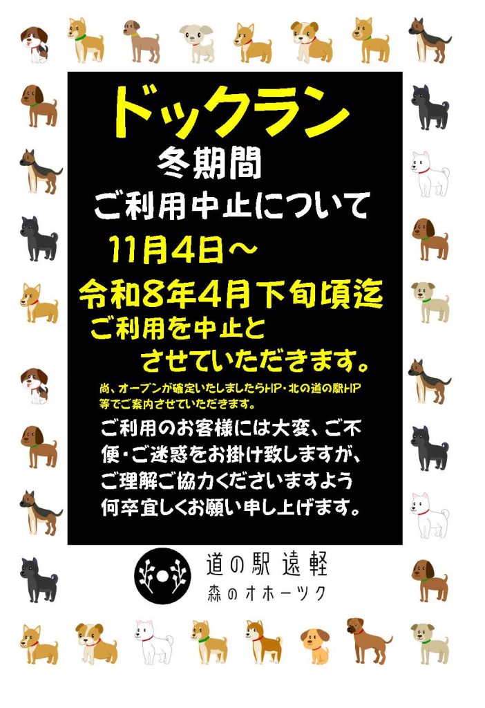 冬期間のドッグラン利用のお知らせです。
