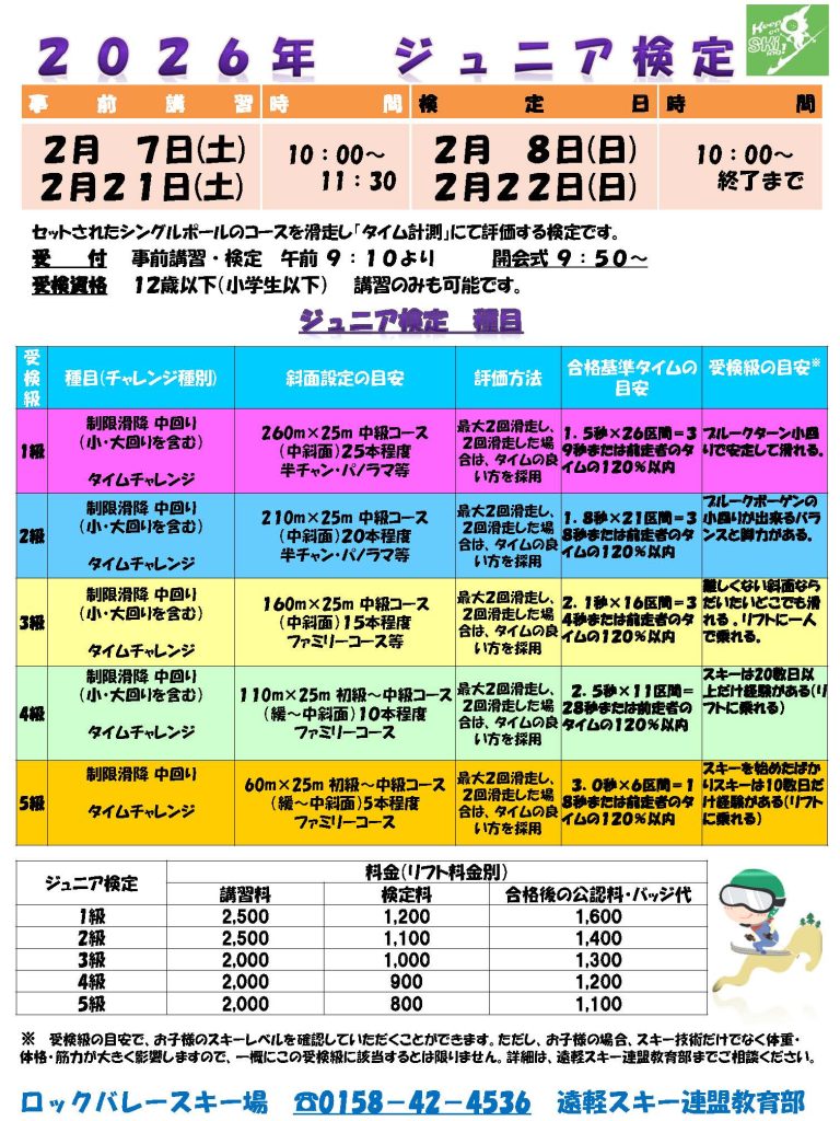 2026年のスキー検定の日程が決まりましたのでお知らせいたします。