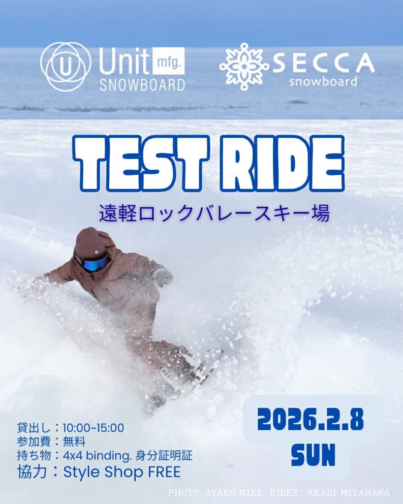 2/8(日)、下記の通り、スノーボード試乗会が開催されますのでご案内いたします☆