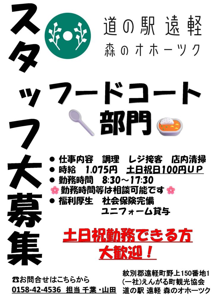 フードコート求人募集のお知らせ