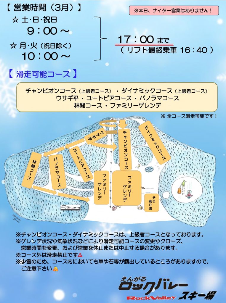 本日の滑走可能コース